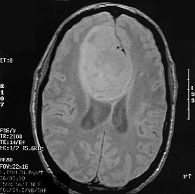 Click on the glioma in the MRI scan below: